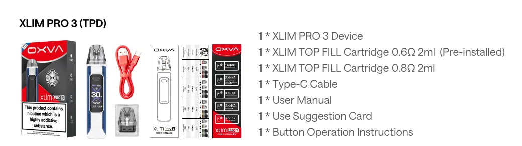 Comes with Xlim V3 0.6Ω and 0.8Ω top-fill pods